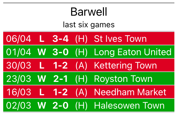 With three wins and three losses over that period, Barwell’s form is better – they have taken nine points from 18, compared to the hosts’ five.