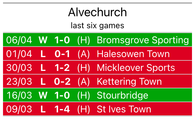 Alvechurch won, 1-0 at home against Bromsgrove Sporting.