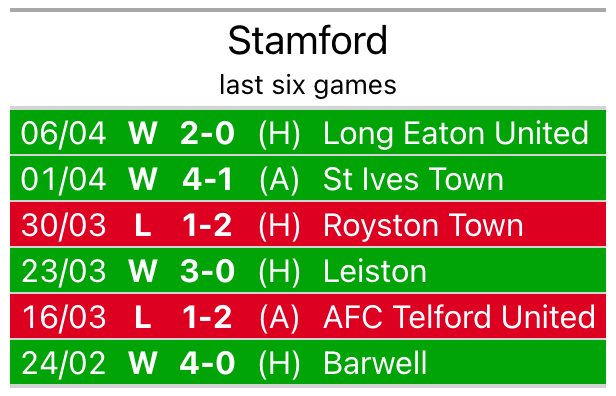 Stamford beat Long Eaton United 2-0 last time out, also on April 6.