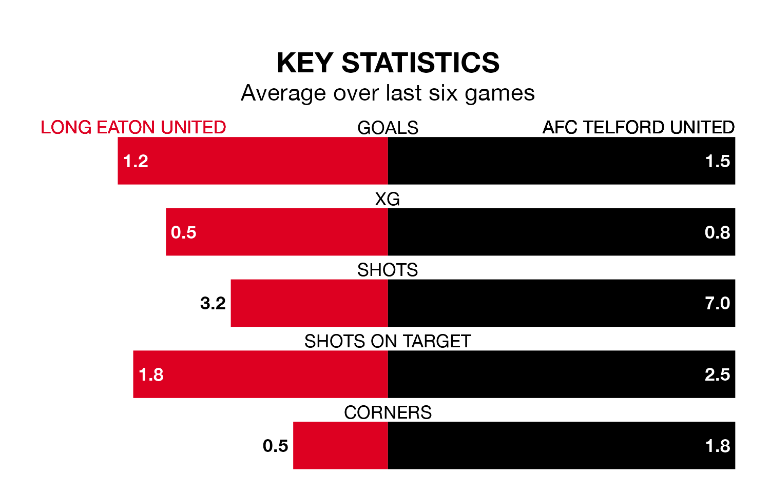 Telford United have picked up 13 points from their last six games, and they face a Long Eaton side who have lost their last three matches, and collected three points from the last possible 18.