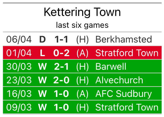 Kettering Town are 16th in the table after 37 games, of which they have won 12 and drawn eight, earning 44 points.
