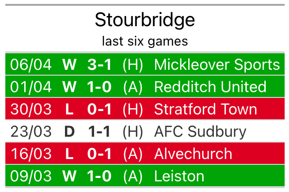 Their last meeting was on December 12, when Stourbridge won 2-0 at home.