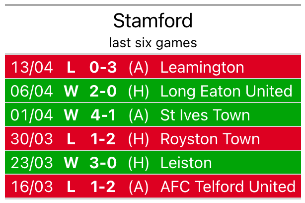 The visitors have won one and drawn one of their last six fixtures, while Stamford have three wins and three losses.