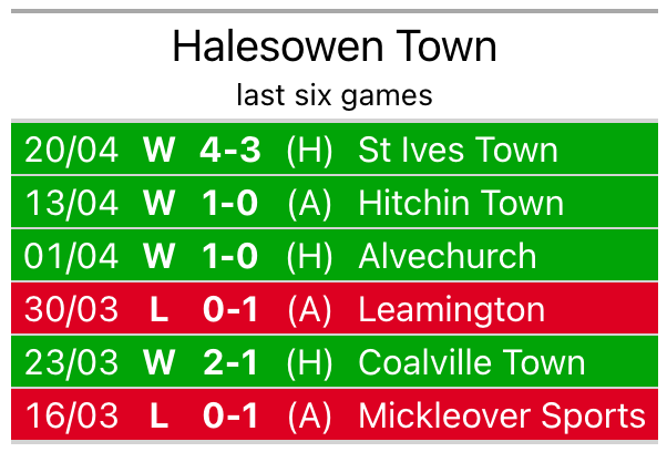 Halesowen beat St Ives Town 4-3 last time out, also on April 20.