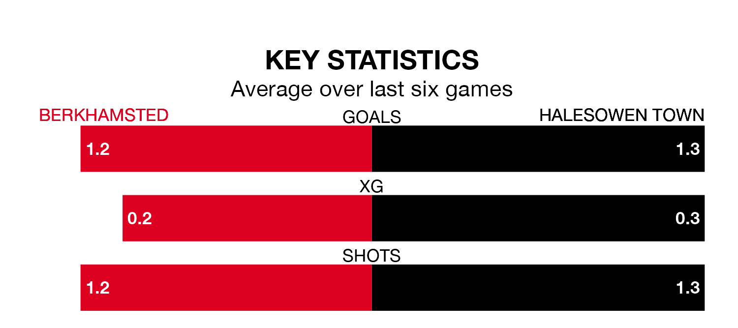 Halesowen have picked up 12 points from their last six games, and they face a Berkhamsted side who lost their last match, and have collected four points from the last possible 18.