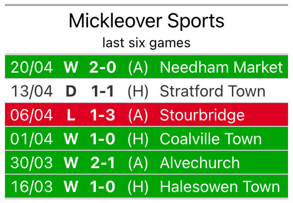 Mickleover Sports are in good form in the Southern League Premier Central, with four wins and a draw from their last six games.
