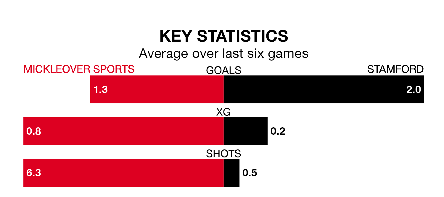 With four wins and two losses over that period, the visitors’ form is slightly worse – they have taken 12 points from 18, compared to Mickleover Sports’ 13.