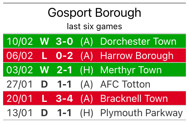 Gosport’s last match was on February 10, a 3-0 win against Dorchester Town.