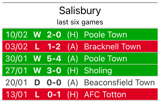 Salisbury beat Poole Town 2-0 last time out, also on February 10.