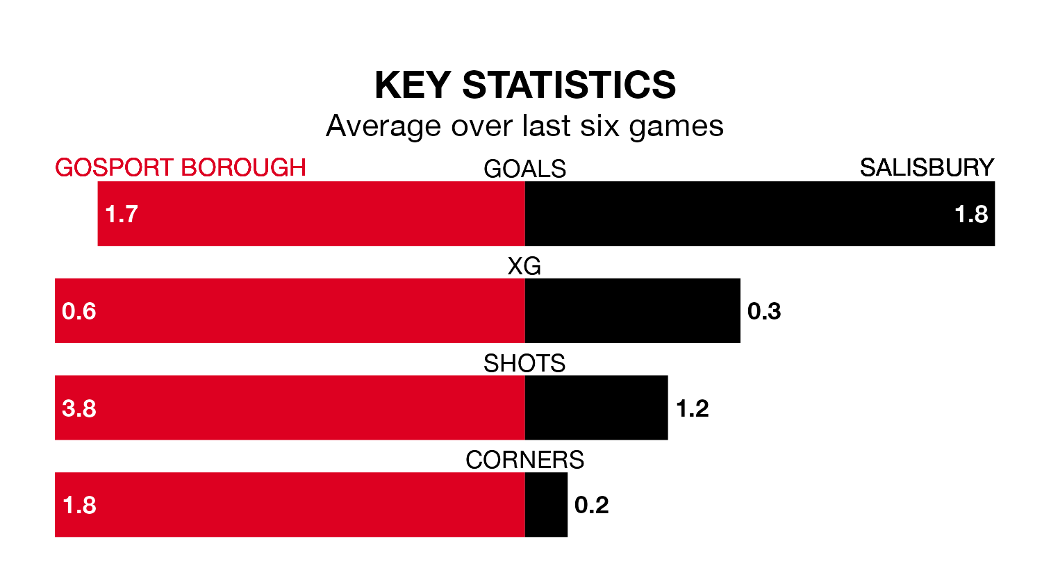 On average, Gosport scored 1.7 goals and Salisbury 1.2 in those matches.