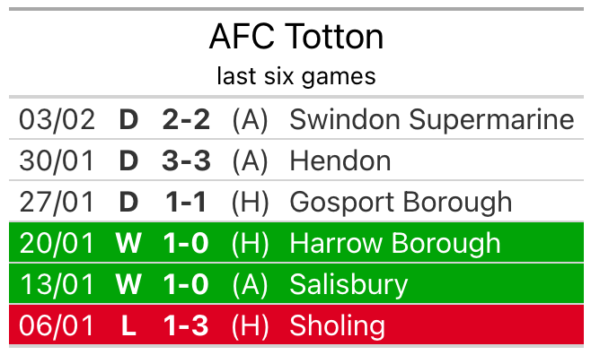Totton drew 2-2 with Swindon Supermarine last time out, on February 3.