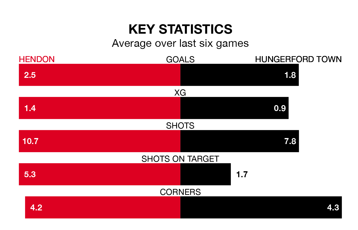 With two wins and four losses over that period, Hungerford’s form is worse – they have taken six points from 18, compared to Hendon’s 11.