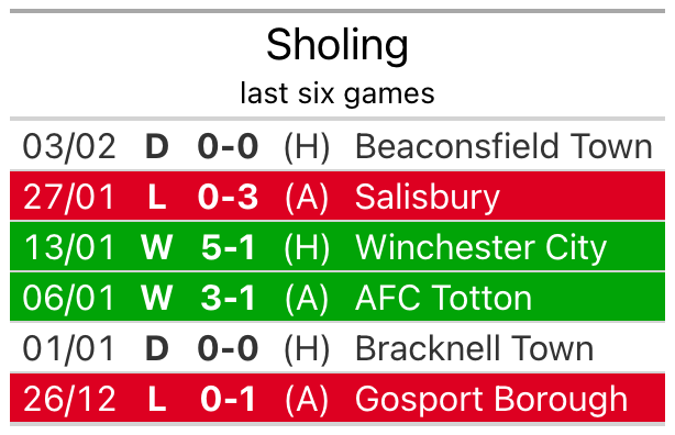 With five wins and a draw over that period, United’s form is much better – they have taken 16 points from 18, compared to Sholing’s eight.