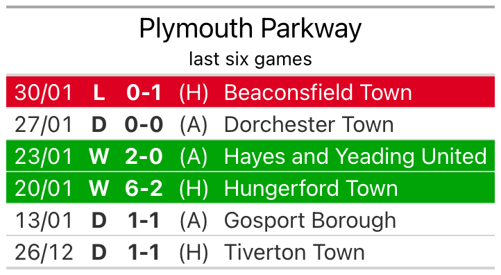 Plymouth Parkway lost, 1-0 at home against Beaconsfield Town on January 30.