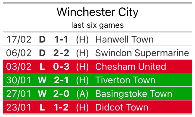 Winchester drew 1-1 with Hanwell Town last time out, also on Saturday.