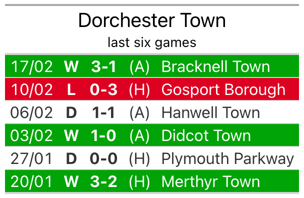 Dorchester beat Bracknell Town 3-1 last time out, also on Saturday.