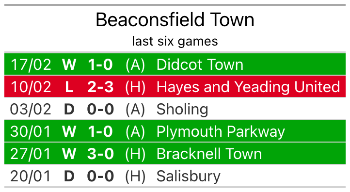 Beaconsfield, meanwhile, won their last match, 1-0 against Didcot Town.