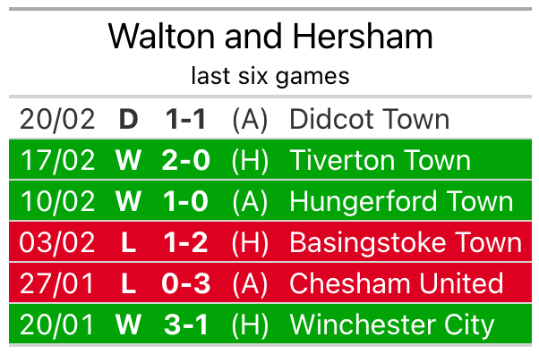Their last meeting was on October 21, when Walton & Hersham won 1-0 at home.