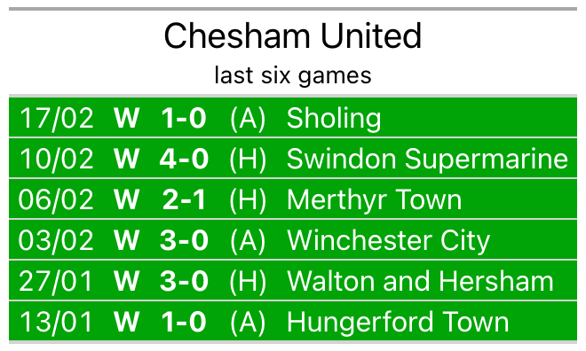 It means Chesham have picked up the maximum 18 points from their last six games, and they face a Poole side who have lost their last six matches, and collected no points from the last possible 18.