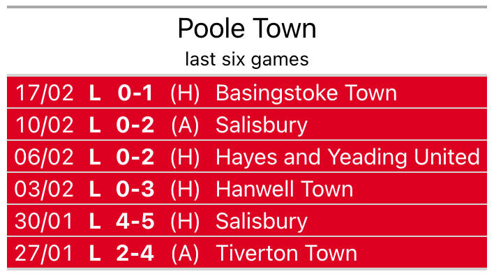 Poole lost 1-0 against Basingstoke Town last time out, also on February 17.