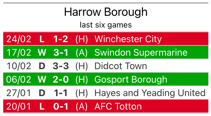 Harrow also lost, 2-1 at home against Winchester City on February 24.