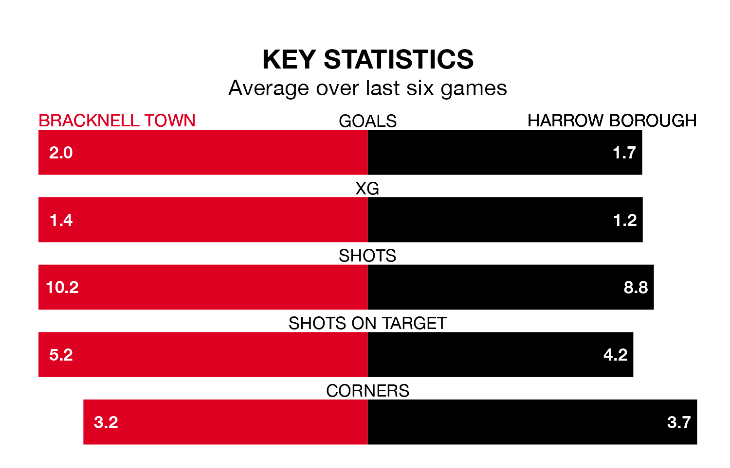 On average, Bracknell scored 3.6 goals and Harrow 0.6 in those matches.