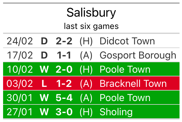Salisbury drew 2-2 with Didcot Town last time out, also on February 24.