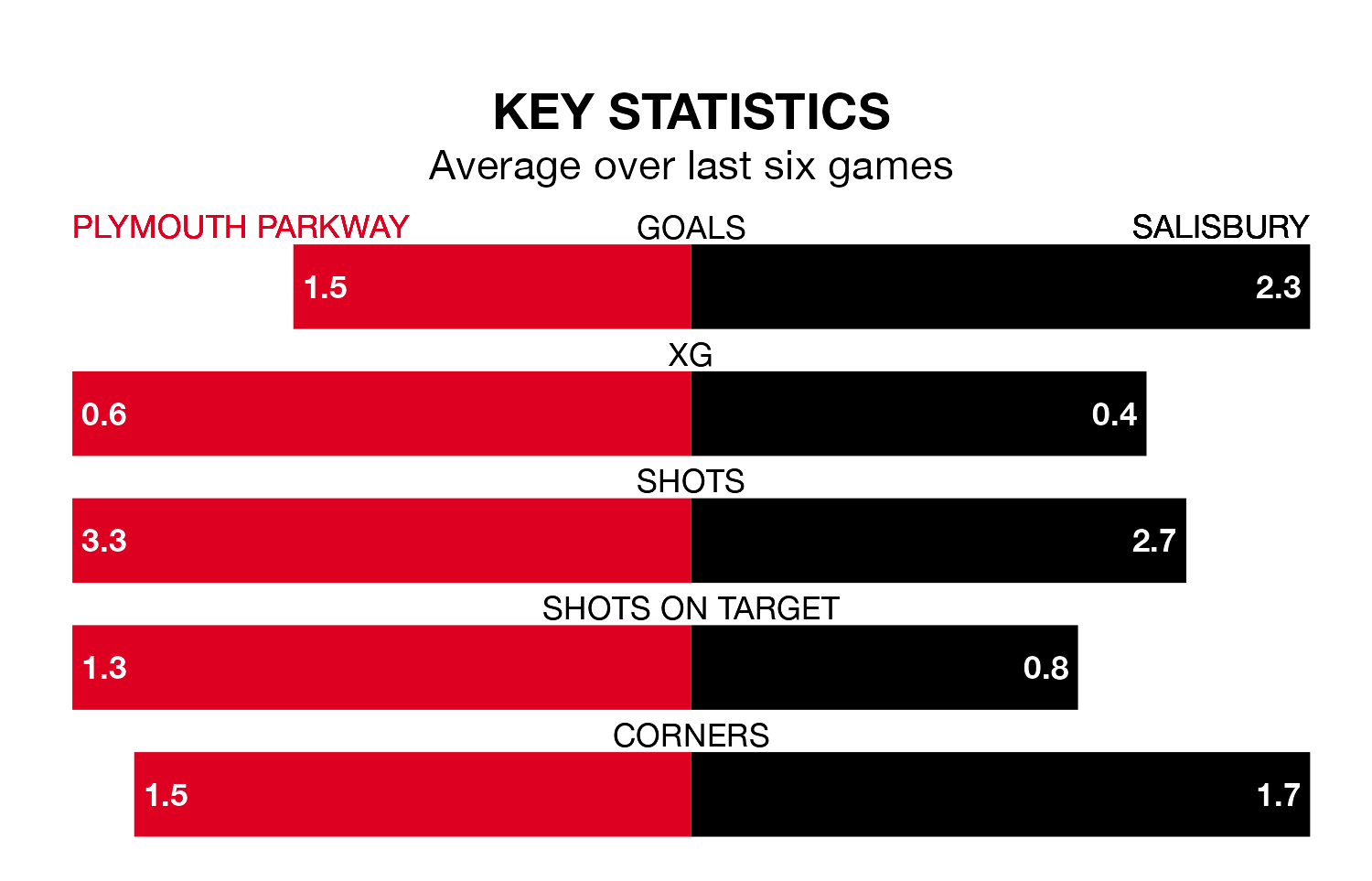 With three wins and two draws over that period, the away team’s form is better – they have taken 11 points from 18, compared to Plymouth Parkway’s eight.