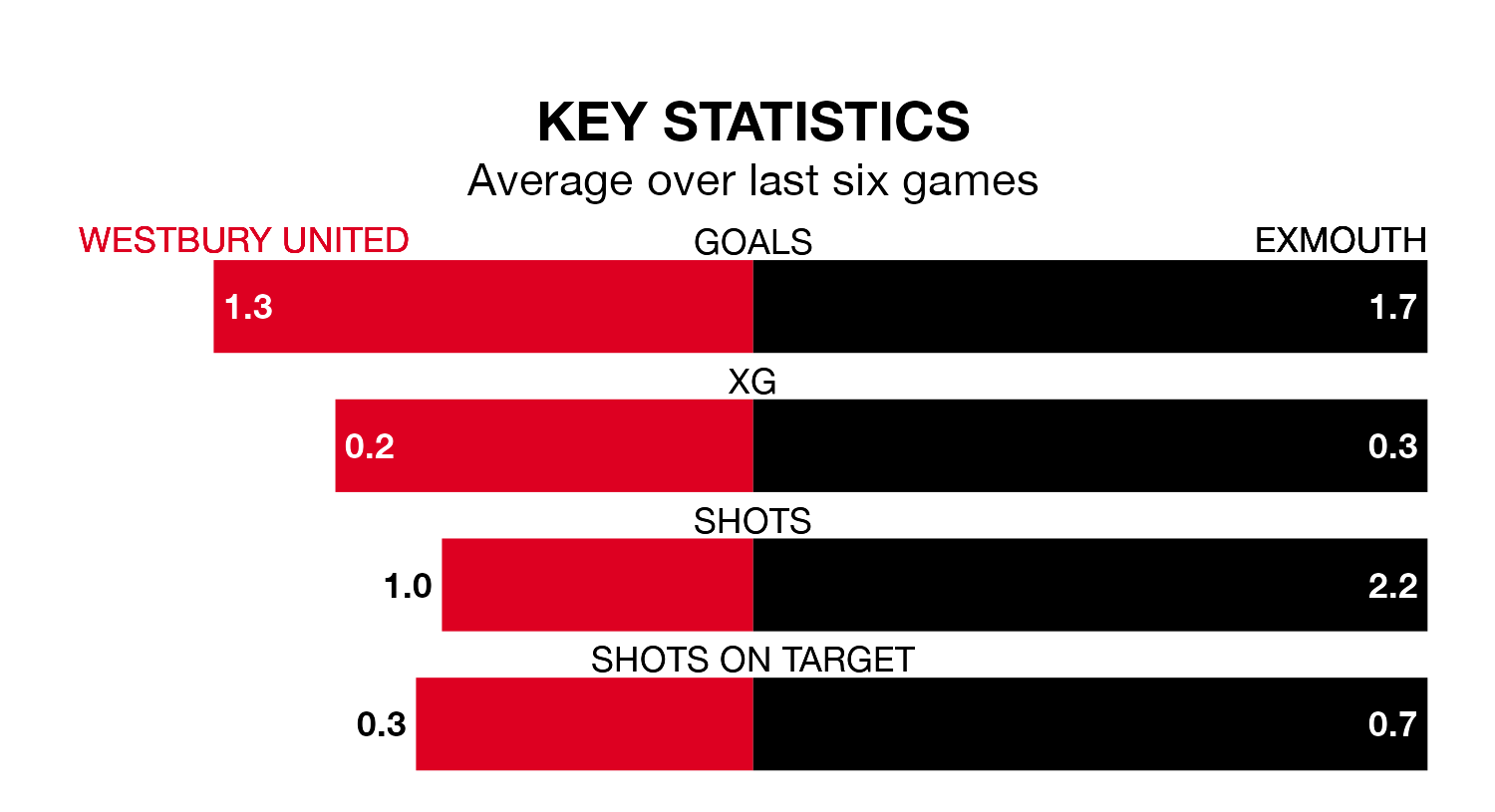 With two wins and a draw over that period, Exmouth’s form is slightly better – they have taken seven points from 18, compared to United’s five.