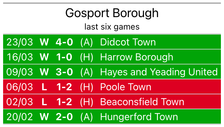 Gosport beat Didcot Town 4-0 last time out, also on Saturday.