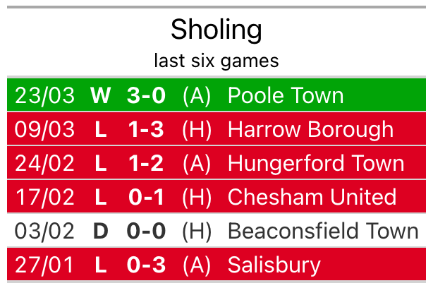 Sholing are eight places ahead of the away team in 12th, with 12 wins and seven draws putting them on 43 points.