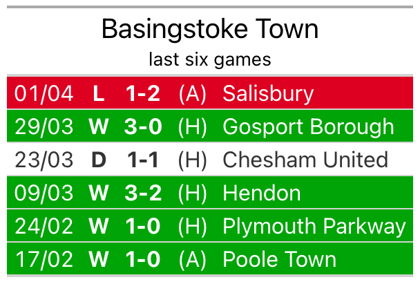 In their last league match, on Monday, Basingstoke lost to Salisbury 2-1 away.