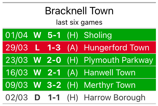 Bracknell Town are fifth in the table after 37 games, of which they have won 18 and drawn four, earning 58 points.