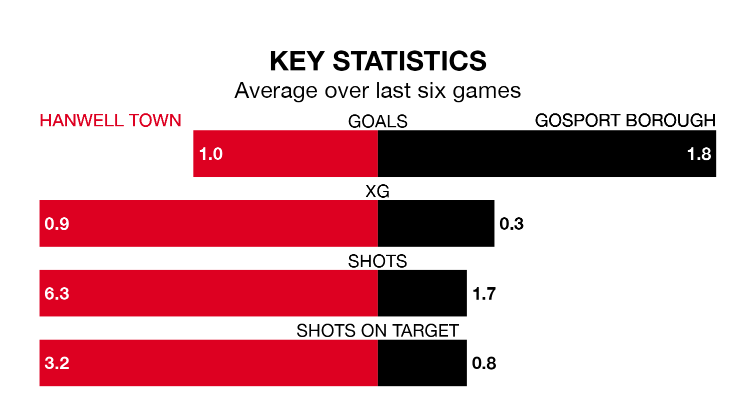 With four wins and two losses over that period, Gosport’s form is better – they have taken 12 points from 18, compared to Hanwell’s seven.