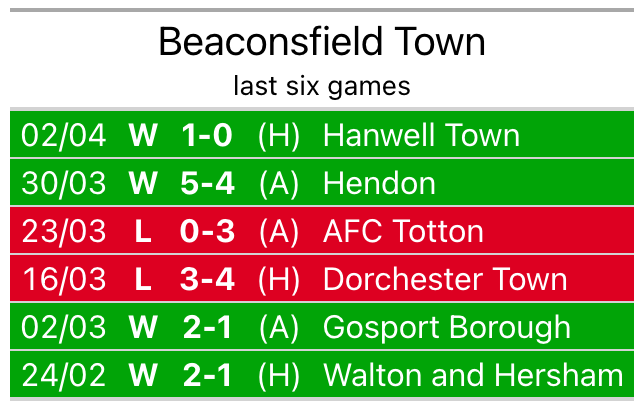 Beaconsfield won, 1-0 at home against Hanwell Town on Tuesday.