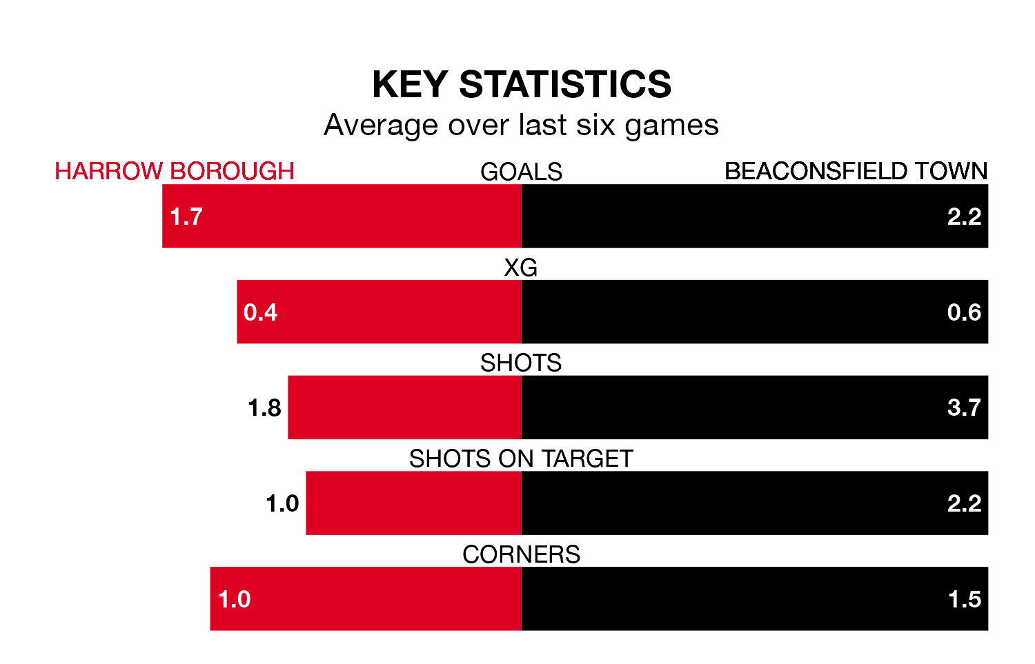 On average, Harrow scored 1.9 goals and Beaconsfield 1.9 in those matches.