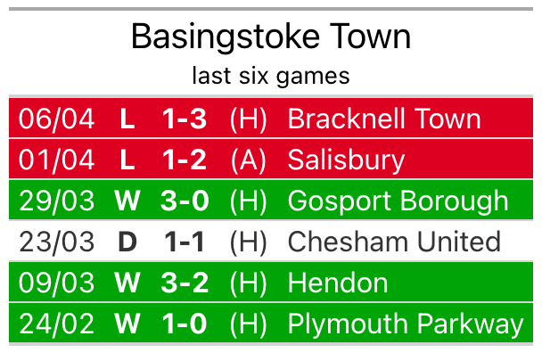With 66 goals in 38 games so far this season, Basingstoke are scoring at the league’s average rate with 1.7 goals per game. And they are conceding more than average, letting in 77 goals at a rate of 2.0 per game.