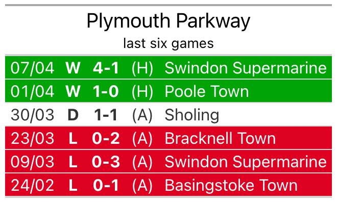 They travel to play a Plymouth Parkway side 19th in the standings, who also won their last match, 4-1 against Swindon Supermarine, on April 7.