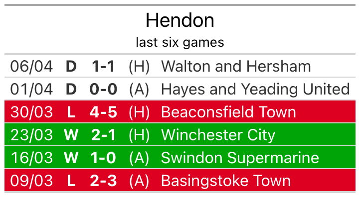And also with two wins and two draws over that period, Hendon’s form is identical – they have both taken eight points from 18.