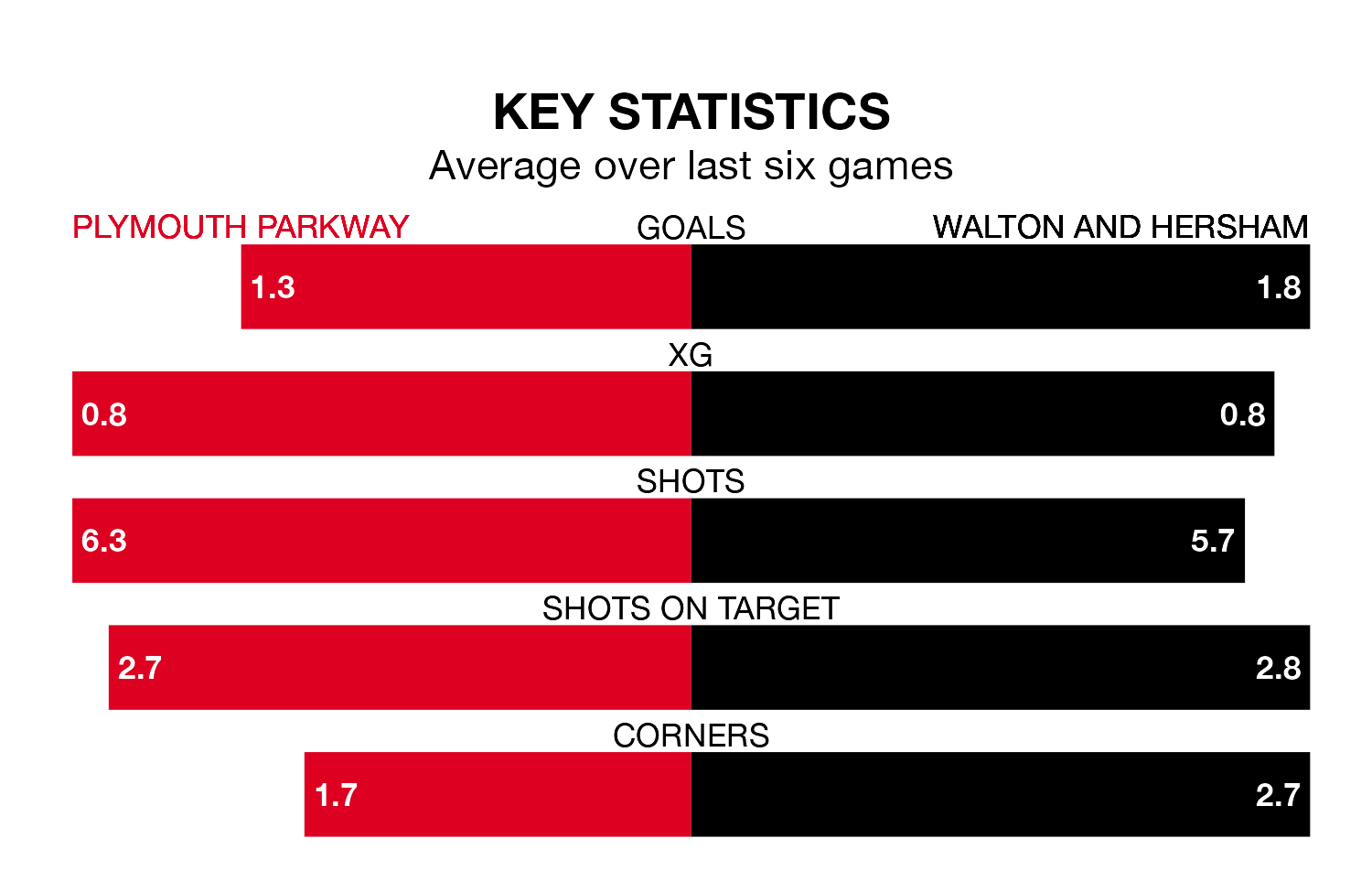 Plymouth Parkway, meanwhile, are below average scorers, with 1.6 goals per game, compared to a league average of 1.7. They have conceded 1.5 goals per game.