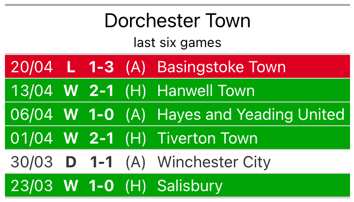 Dorchester, meanwhile, lost their last match, 3-1 against Basingstoke Town.