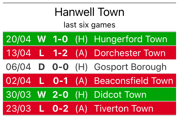 Hanwell are 15 places behind the home side in 17th, with 11 wins and 12 draws putting them on 45 points.