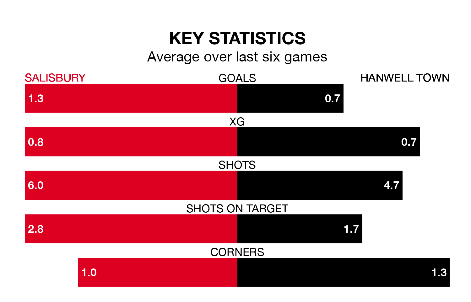 Salisbury, meanwhile, are above average scorers, with 1.7 goals per game, compared to a league average of 1.6. They have conceded 1.1 goals per game.