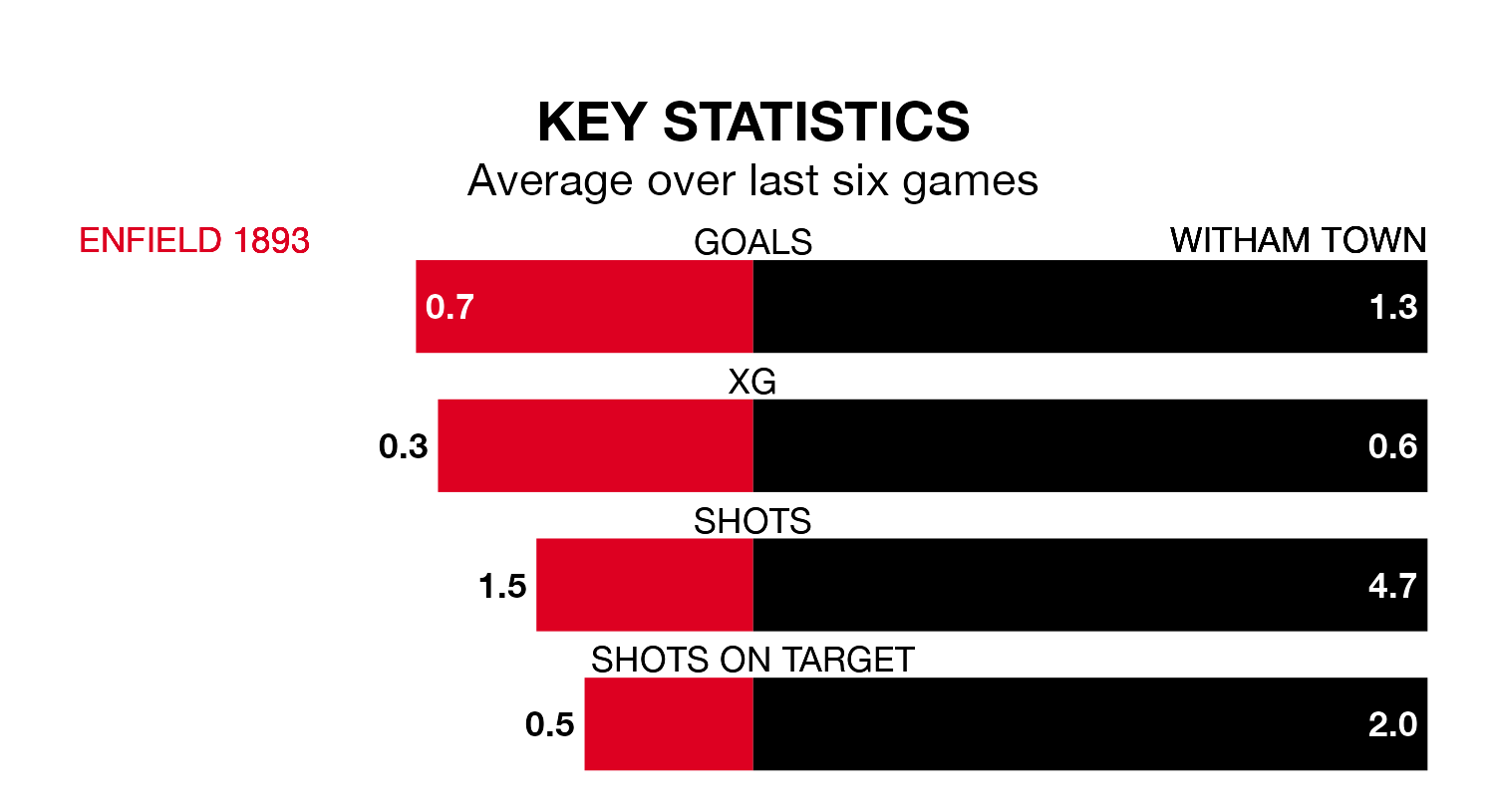 With 24 goals in 22 games so far this season, Enfield 1893 are the league’s third-lowest scorers with 1.1 goals per game. And they are conceding more than average, letting in 51 goals at a rate of 2.3 per game.