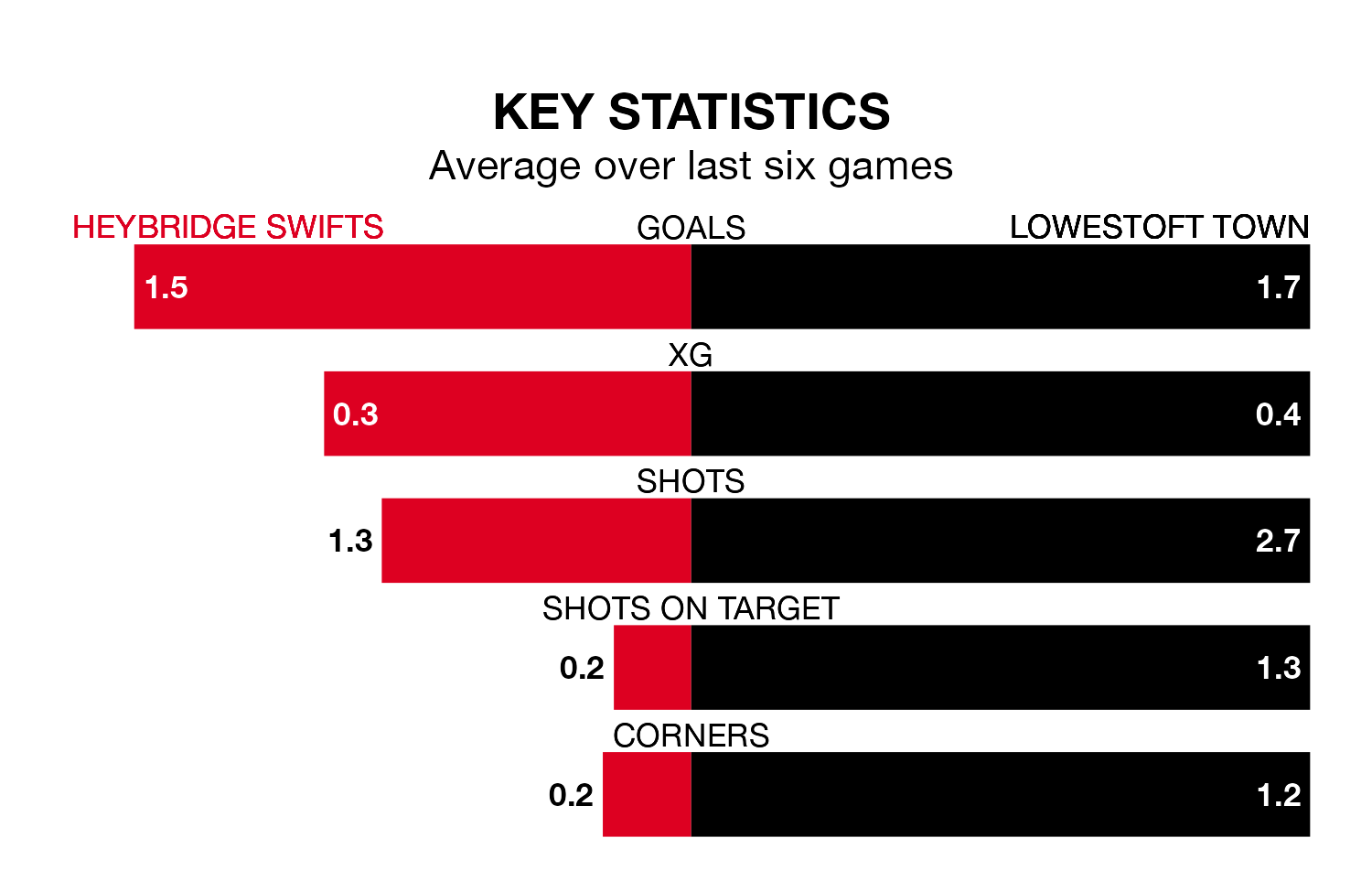 With four wins and a draw over that period, the away side’s form is better – they have taken 13 points from 18, compared to Heybridge Swifts’s eight.