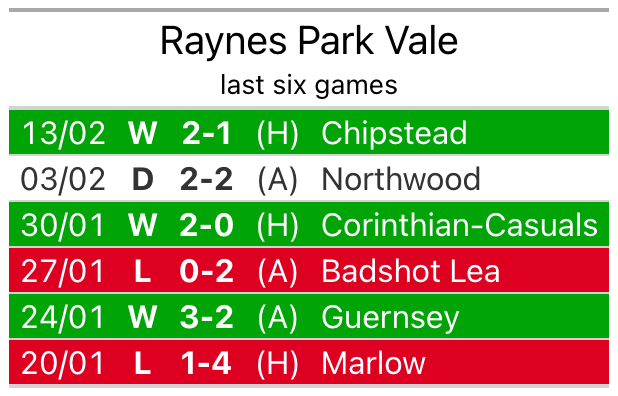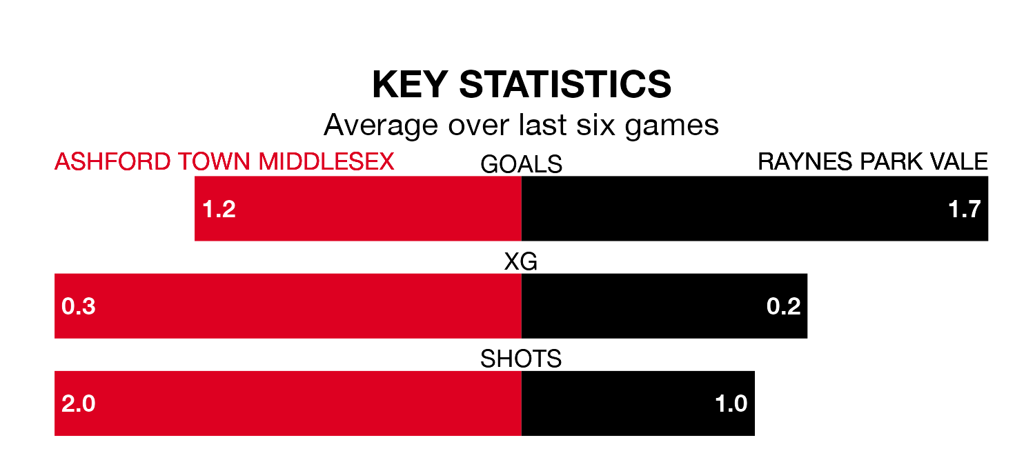 Ashford Town Middlesex are on a terrible run ahead of hosting Raynes Park Vale at the Robert Parker Stadium on Saturday, with just two points collected from their last six games.