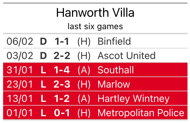 Hanworth Villa are on a terrible run ahead of hosting Uxbridge on Saturday, with just two points collected from their last six games.