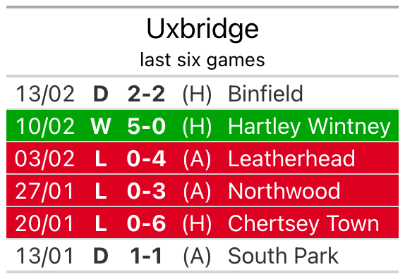 Uxbridge, meanwhile, are average scorers, with 1.7 goals per game. They have conceded 1.9 goals per game.
