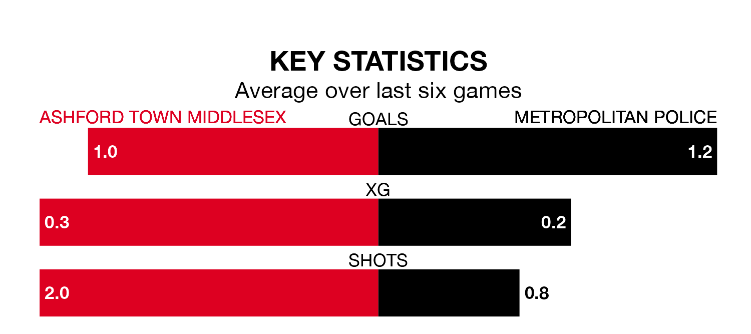 Ashford Town Middlesex are on a terrible run ahead of hosting Metropolitan Police at the Robert Parker Stadium on Tuesday, with just two points collected from their last six games.