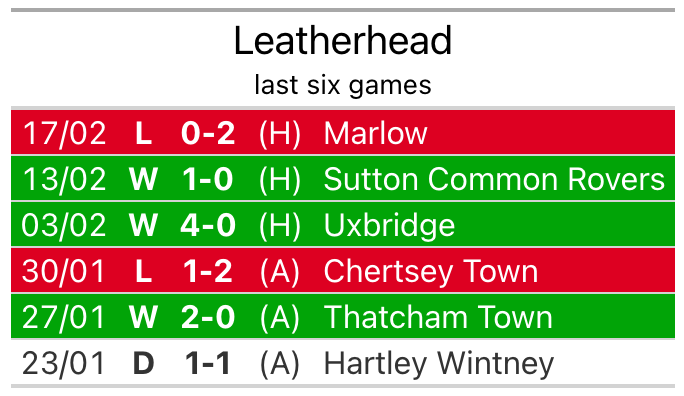 Leatherhead, who sit fourth in the league after 28 games, fell to a 2-0 home defeat to Marlow on February 17.